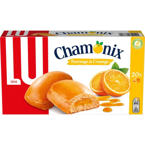 Discover the delicious Chamonix de Lu , soft and airy biscuits generously filled with a smooth orange cream. These little French treats offer a unique taste experience with their melt-in-your-mouth texture and refreshing fruity flavor.