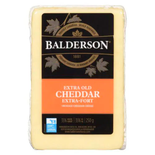 Balderson Extra Strong Cheddar is a mature cheese that delights with its intense flavor and firm texture. Ideal for lovers of strong cheeses, it can be enjoyed on its own, on a cheese board, or to enhance your pasta, gratins, and sandwich recipes.