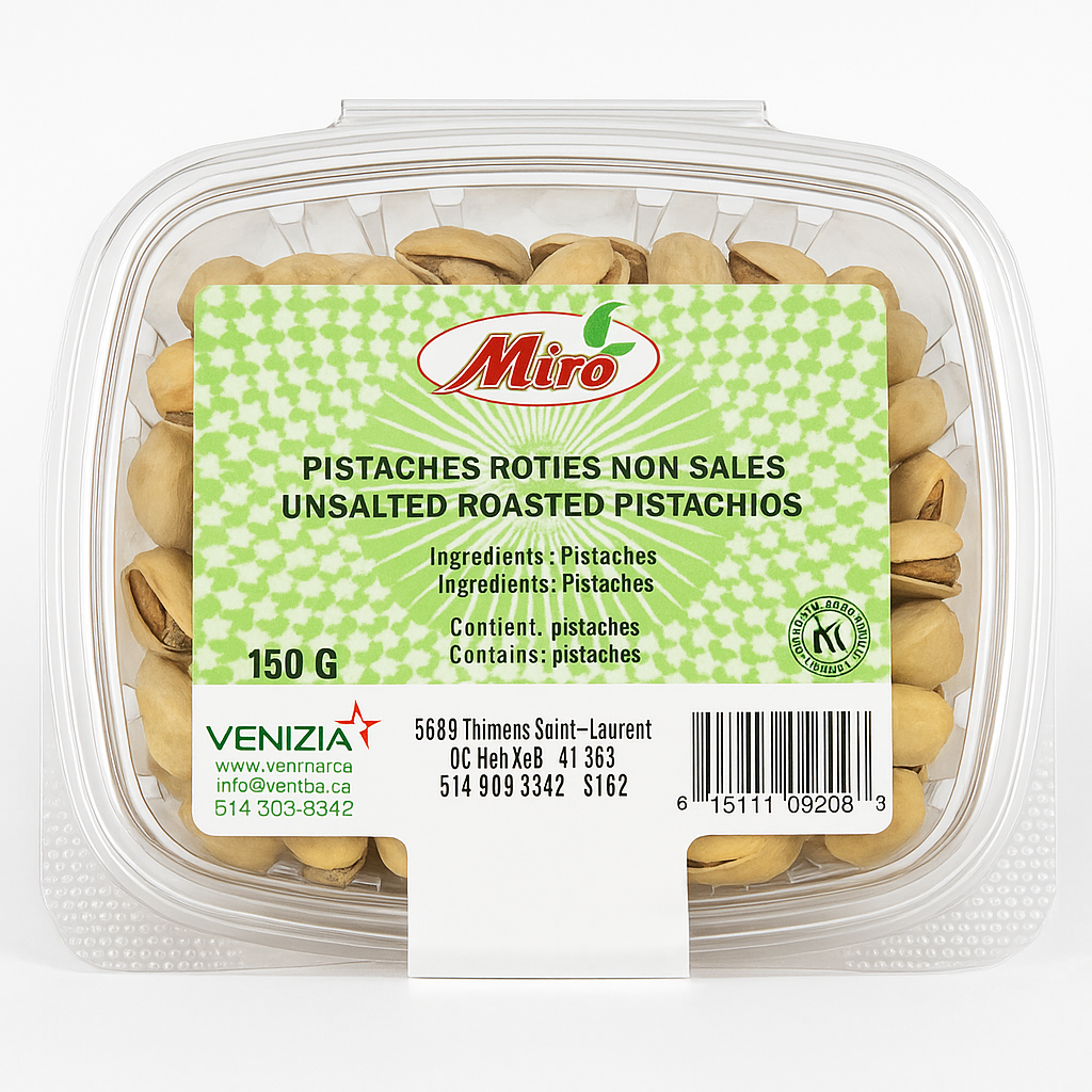 Miro Unsalted Roasted Pistachios are whole nuts with shells , gently dry roasted to preserve their natural taste, without added salt. They are a healthy and nutrient-rich snack , ideal for low-sodium diets , or to incorporate into your homemade recipes , salads , or energy mixes .