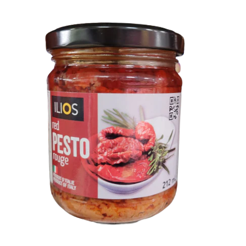 Le pesto rouge Ilios est une sauce riche et savoureuse élaborée à partir de tomates séchées, d’huile d’olive et d’herbes aromatiques. Idéal pour accompagner vos pâtes, sandwichs, pizzas ou bruschettas, il apporte une touche méditerranéenne intense et parfumée à tous vos plats. 🍅🌿